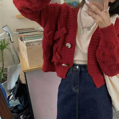 | nameOriginal | Lazy Relaxation Cardigan Top Retro Japanese Style Gentle Style Sweater V-Neck Bow Loose Knitted Sweater for Women |