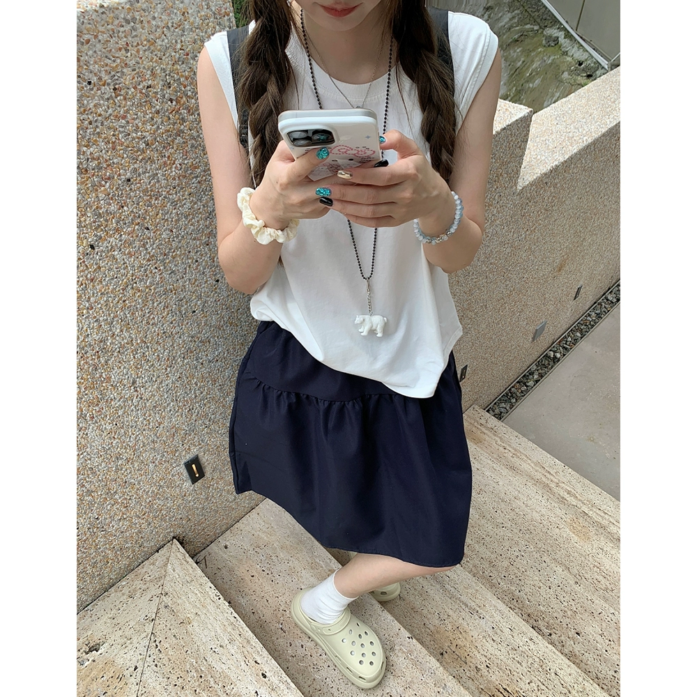 | nameOriginal | Lazy retro Japanese elastic waist A-line half vest |