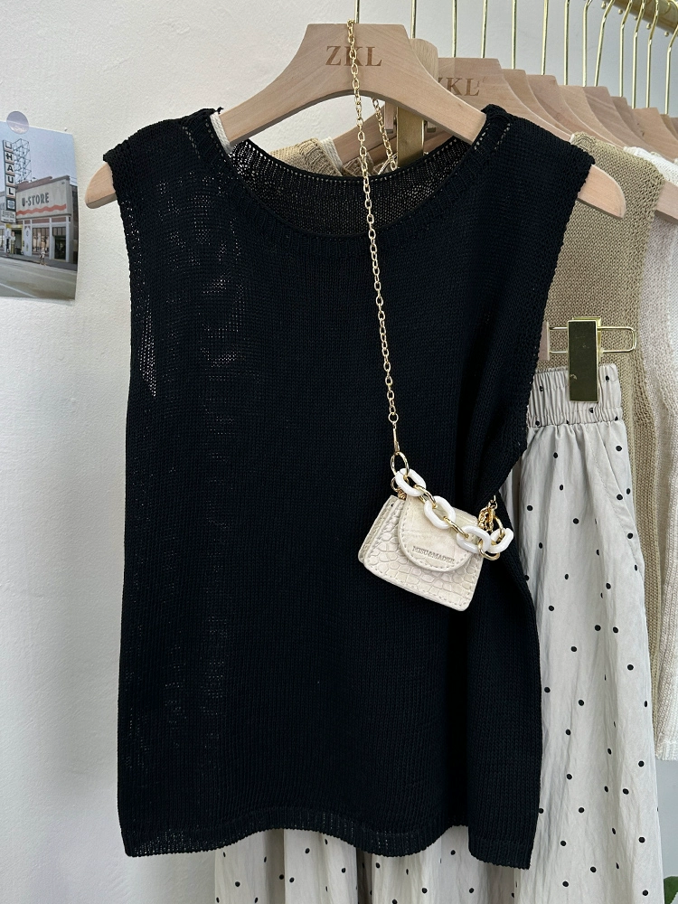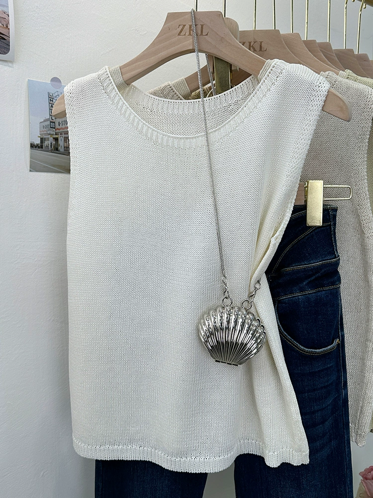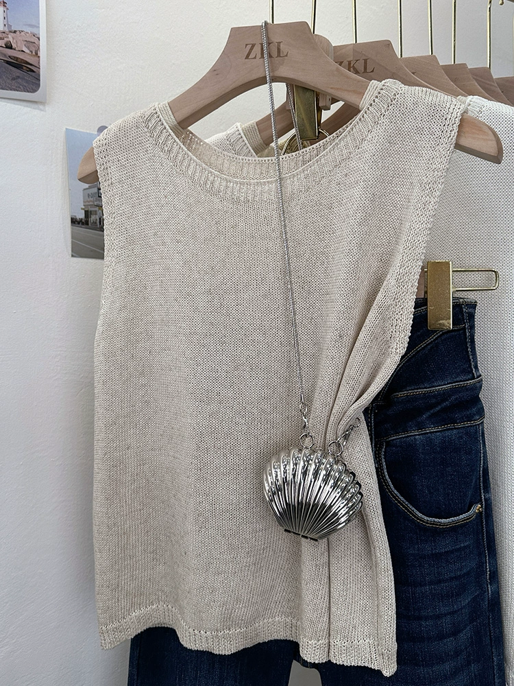 | nameOriginal | Lazy retro sleeveless round neck pullover solid color linen |
