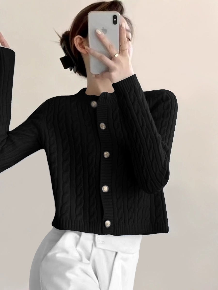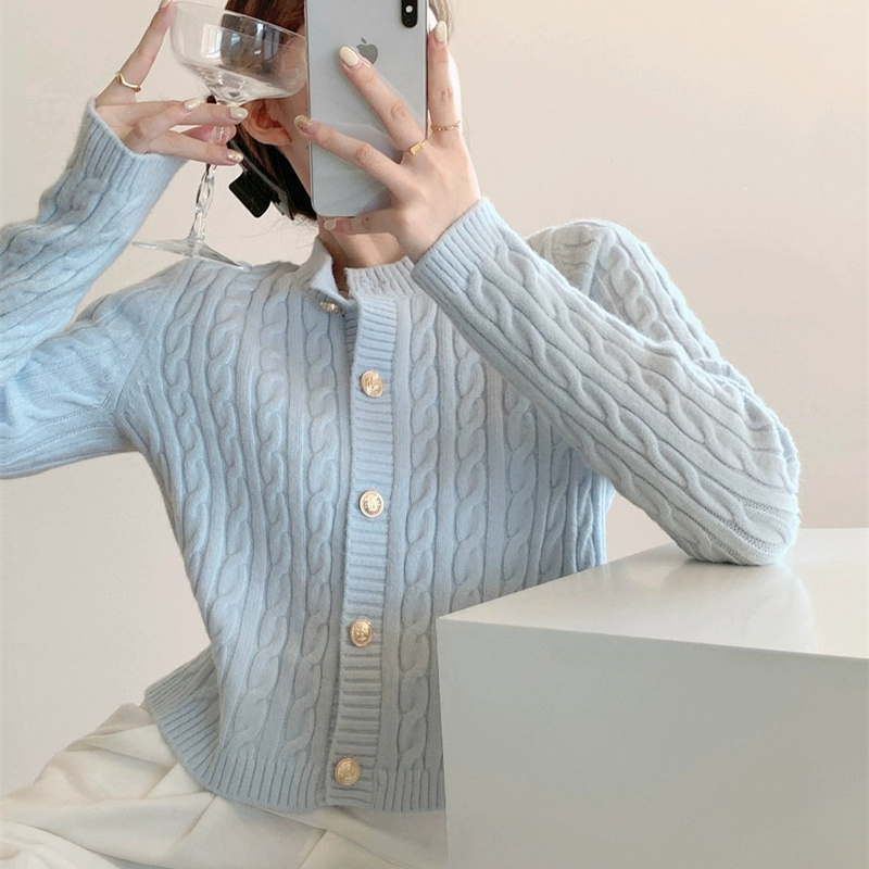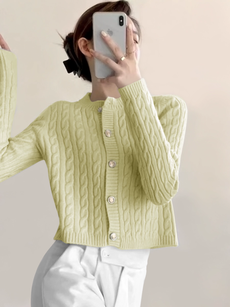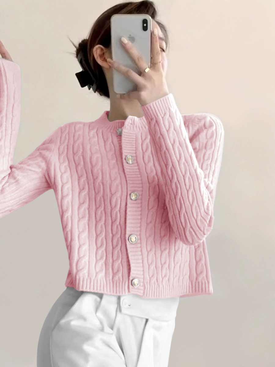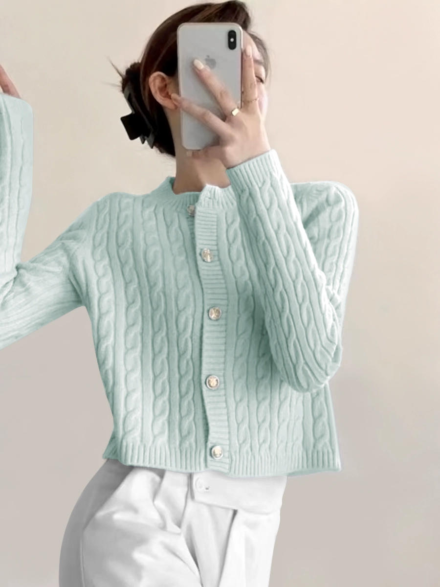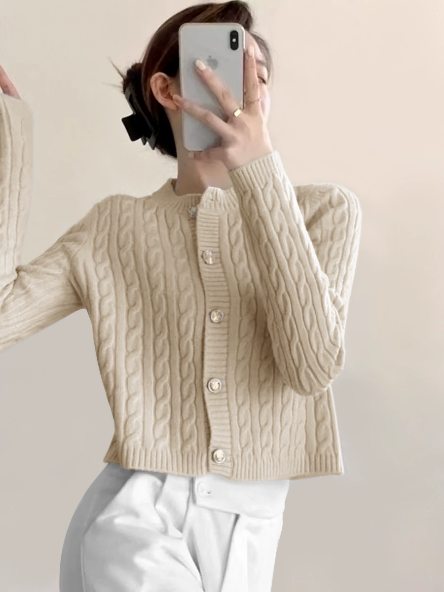 | nameOriginal | Lazy round neck soft waxy sweater coat knitted cardigan |