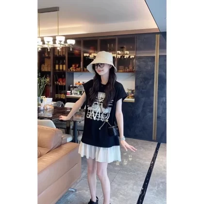 | nameOriginal | Lazy short-sleeved loose T-shirt dress for summer vacation two-piece |