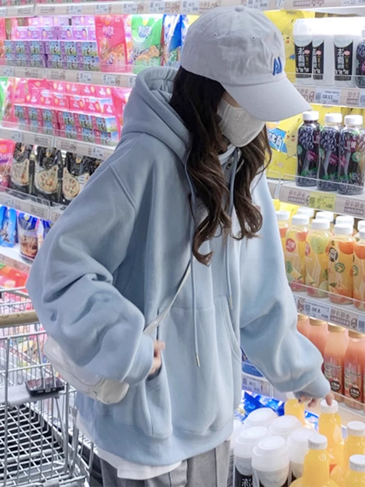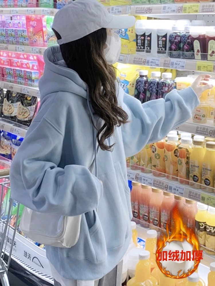 | nameOriginal | Lazy sky blue thickened hooded pure cotton loose sweatshirt |