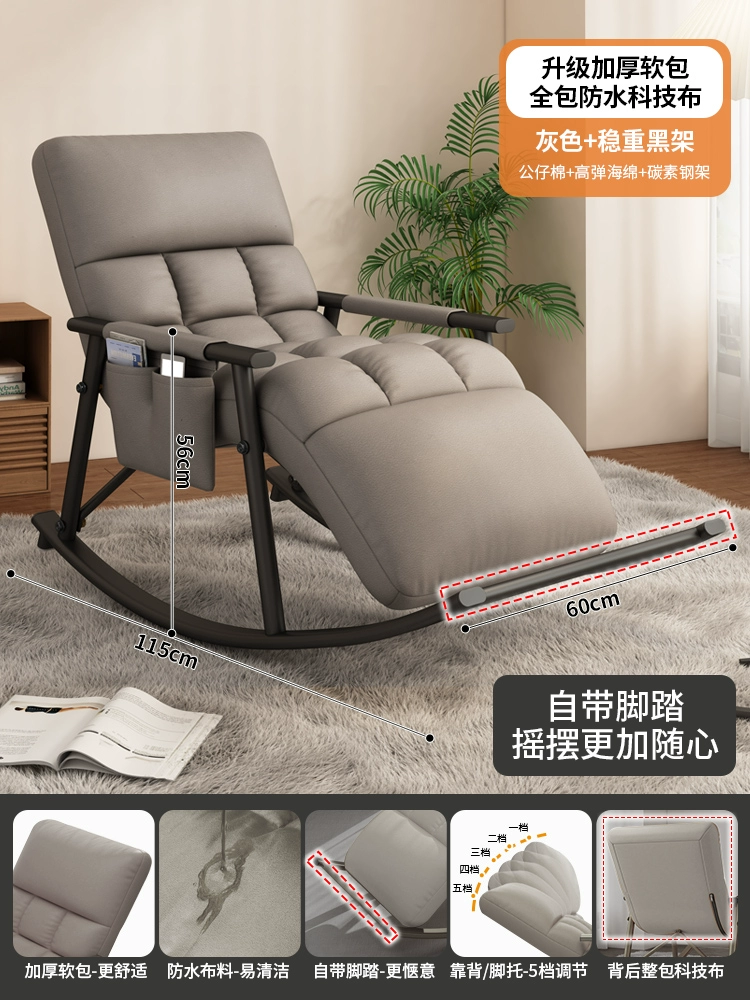 | nameOriginal | Lazy sofa lounge chair home leisure single rocking chair adult balcony living room light luxury reclining and sleeping rocking chair |