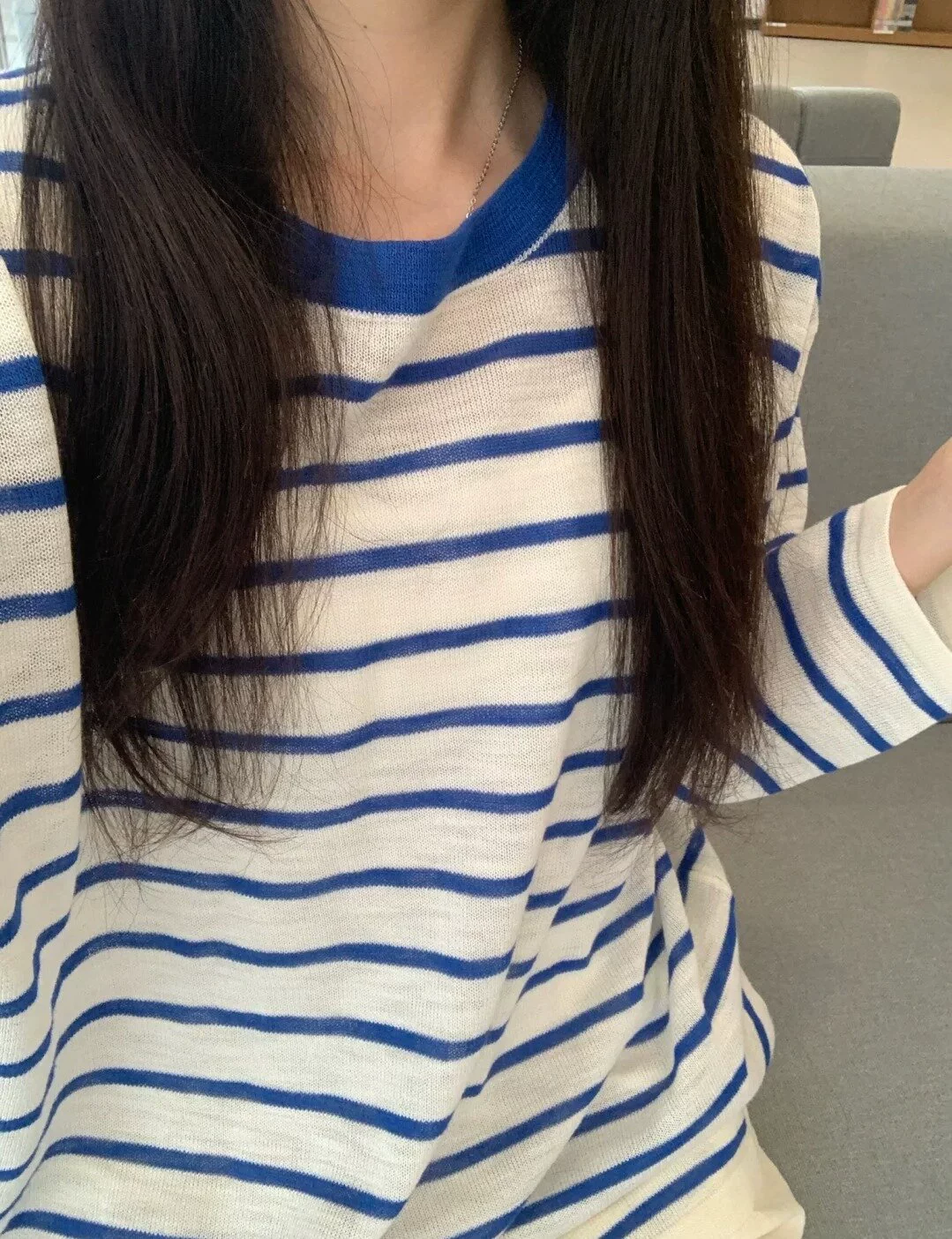 | nameOriginal | Lazy striped loose summer thin long-sleeved T-shirt |