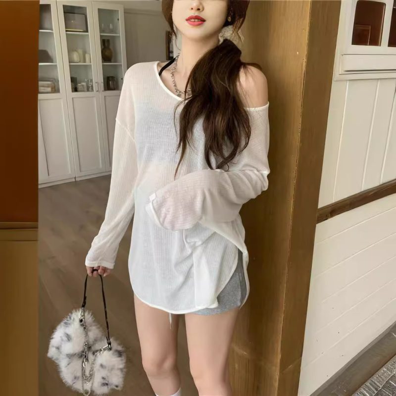 | nameOriginal | Lazy Style Casual Thin Sunscreen Long-sleeved T-shirt Women's Spring and Summer New Niche Loose Slimming Chic White Top |