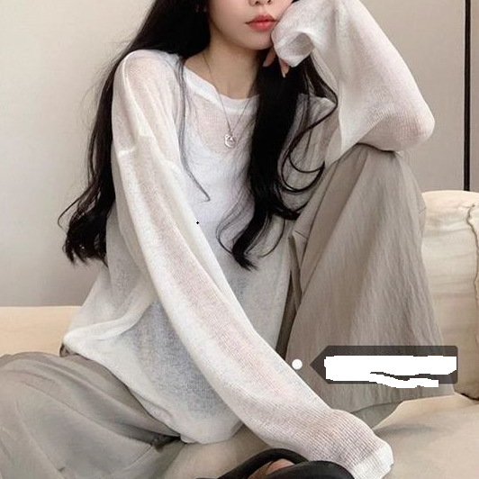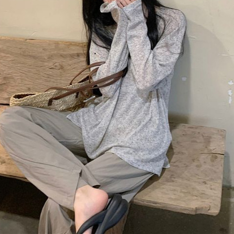 Lazy Style Casual Thin Sunscreen Long-sleeved T-shirt Women’s Summer Niche Slimming Chic Grey Round Neck Top in Trendy