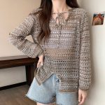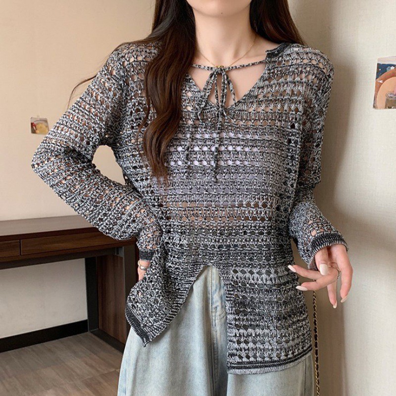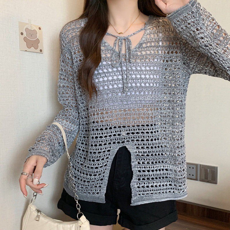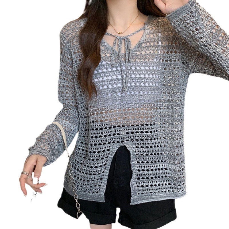 | nameOriginal | Lazy Style Collar Long-sleeved Sunscreen Knitted Blouse Women's Summer New Pullover Split Loose Hollow Top |