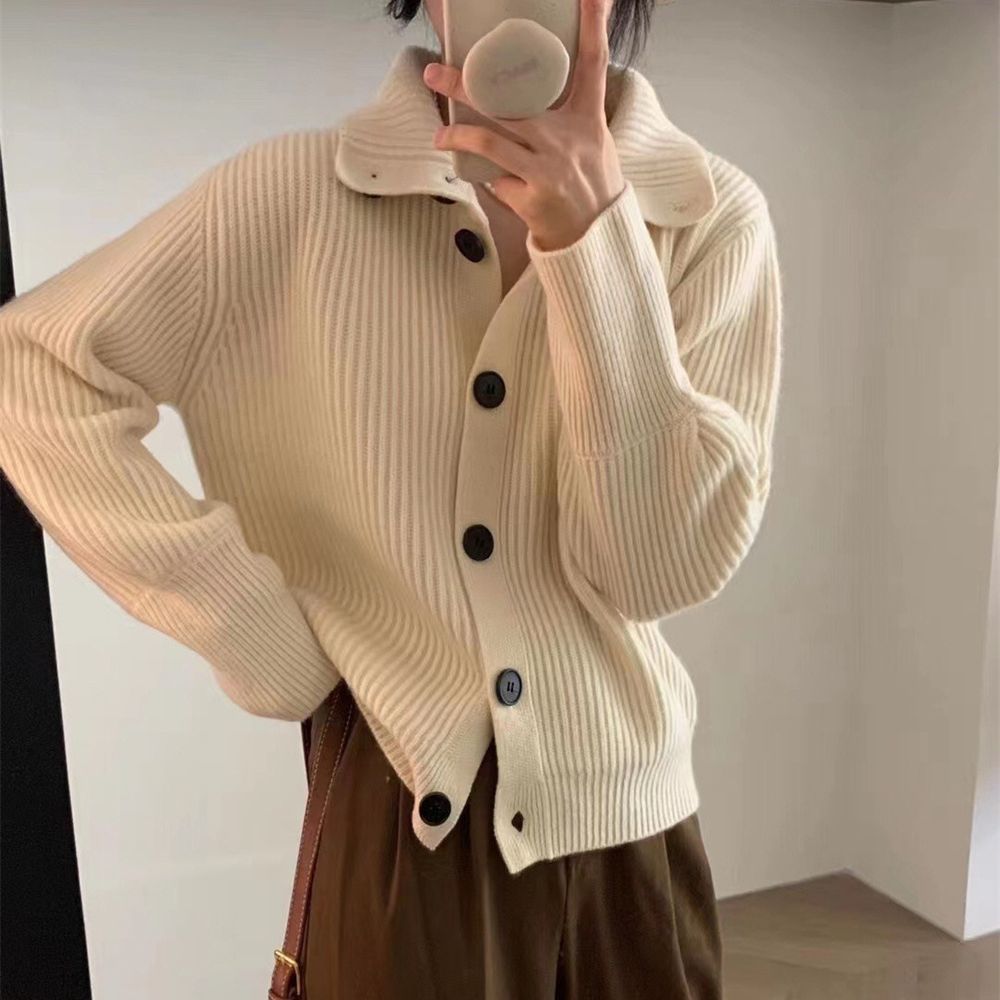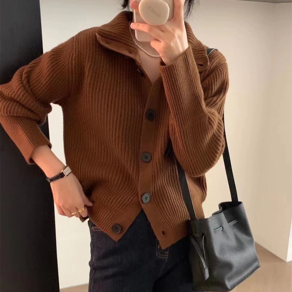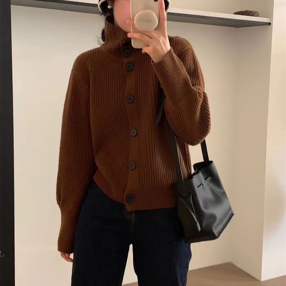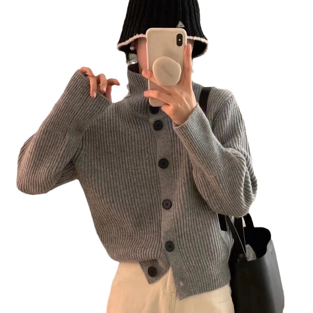 Lazy style Dongdaemun sweater cardigan coat women’s 2020 Autumn and Winter new single-breasted simple turtleneck sweater