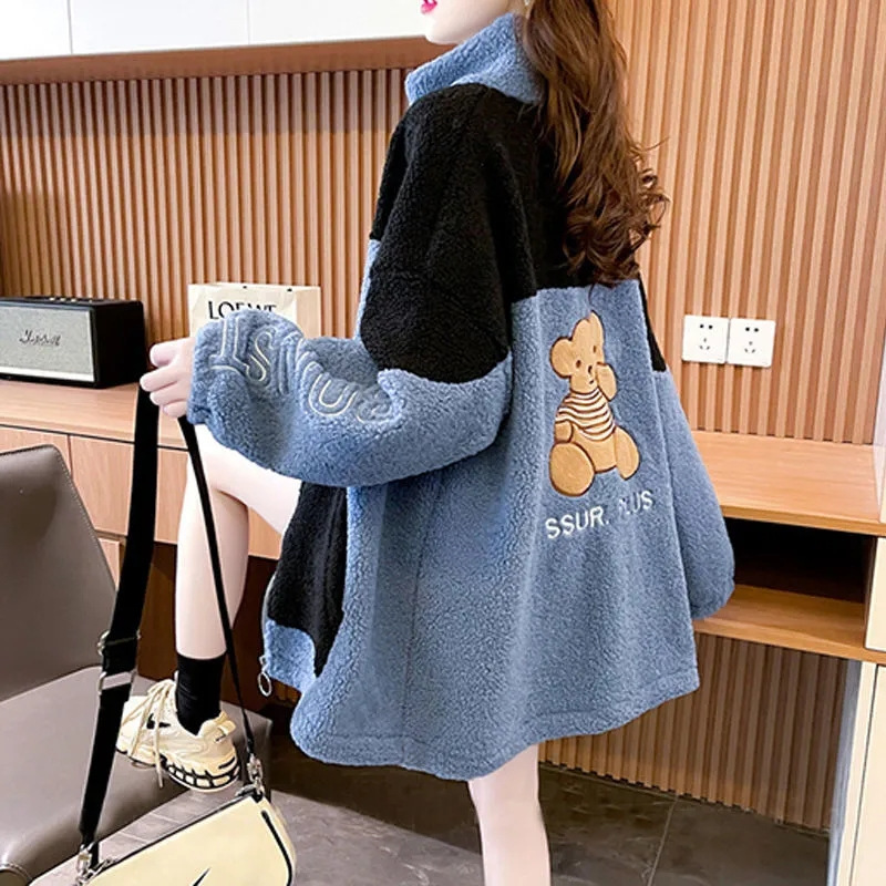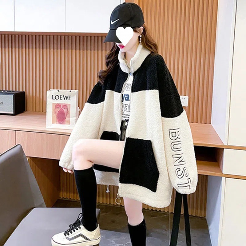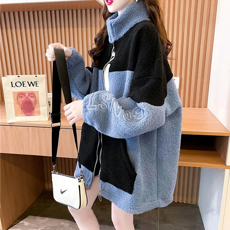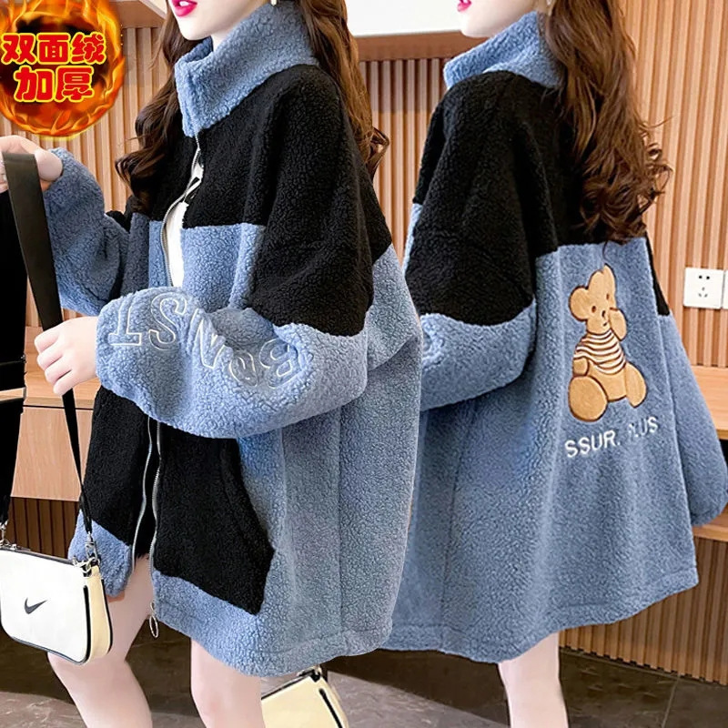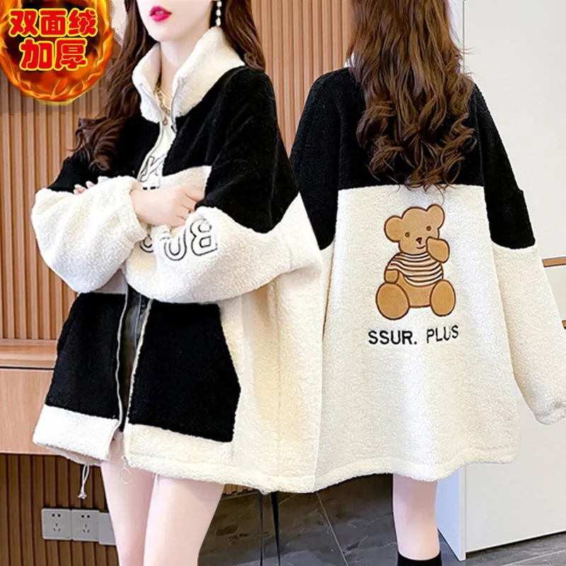 Lazy style double-sided fleece lamb wool coat for women trendy autumn and winter warm sweater winter fleece-lined thickened top clothes