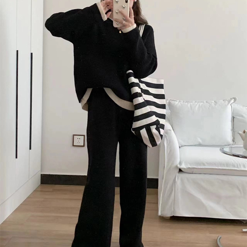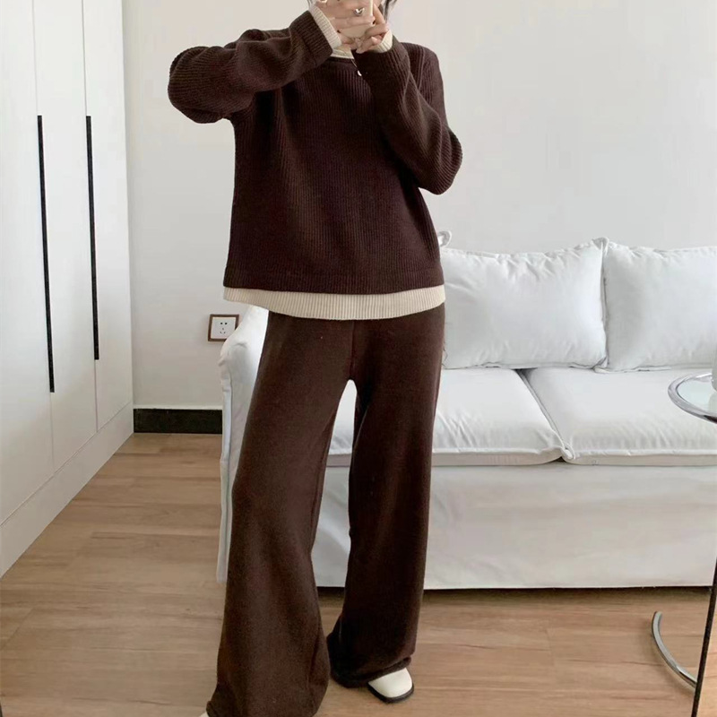 | nameOriginal | Lazy Style Elegant Casual Fake Two-piece Sweater suit Women Autumn and Winter New Design Sense Outer Wear Wide-leg Pants Two-piece Set |
