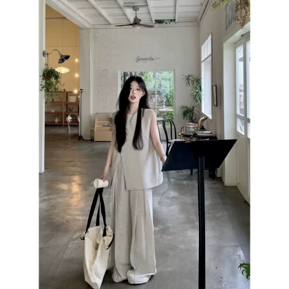 | nameOriginal | Lazy style floor-sweeping casual pants vest with slits |