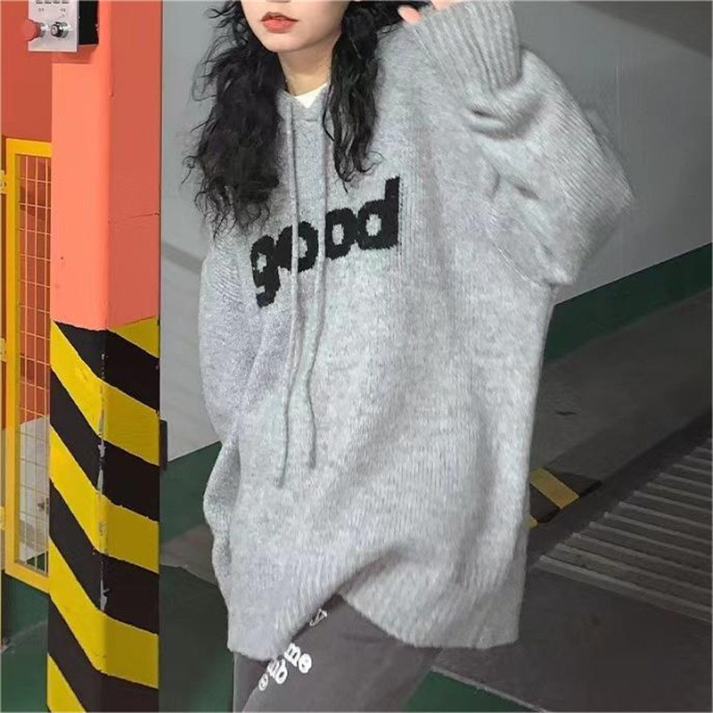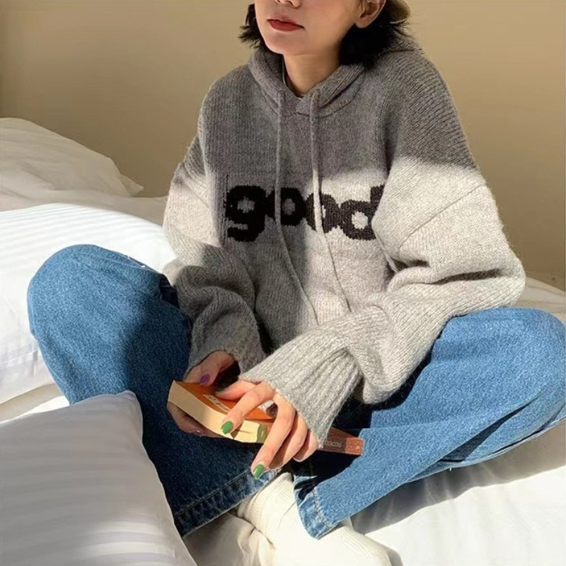 | nameOriginal | Lazy style hooded knitted coat for women autumn and winter New loose slimming classic gray women's Jacquard knitted sweater |