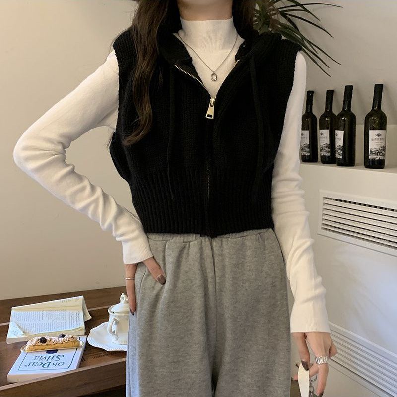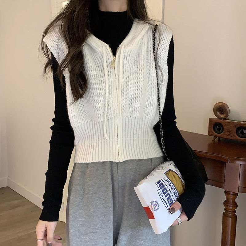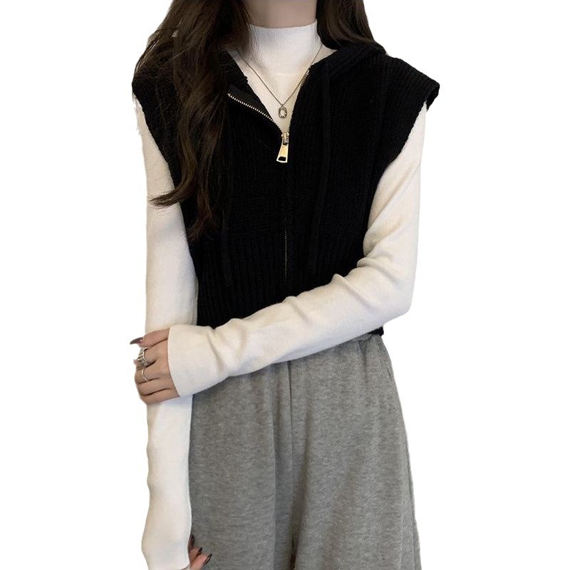 | nameOriginal | Lazy Style Hooded Knitted Vest Women's Design Sense Niche Autumn and Winter Zipper Cardigan Sweater Vest Vest Top |