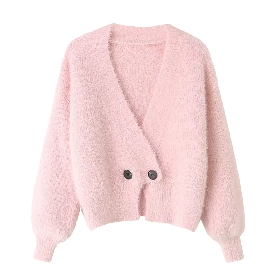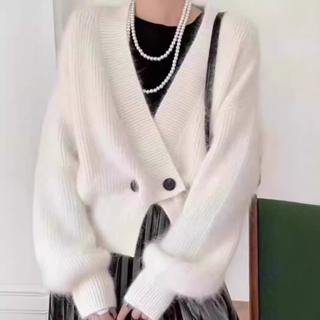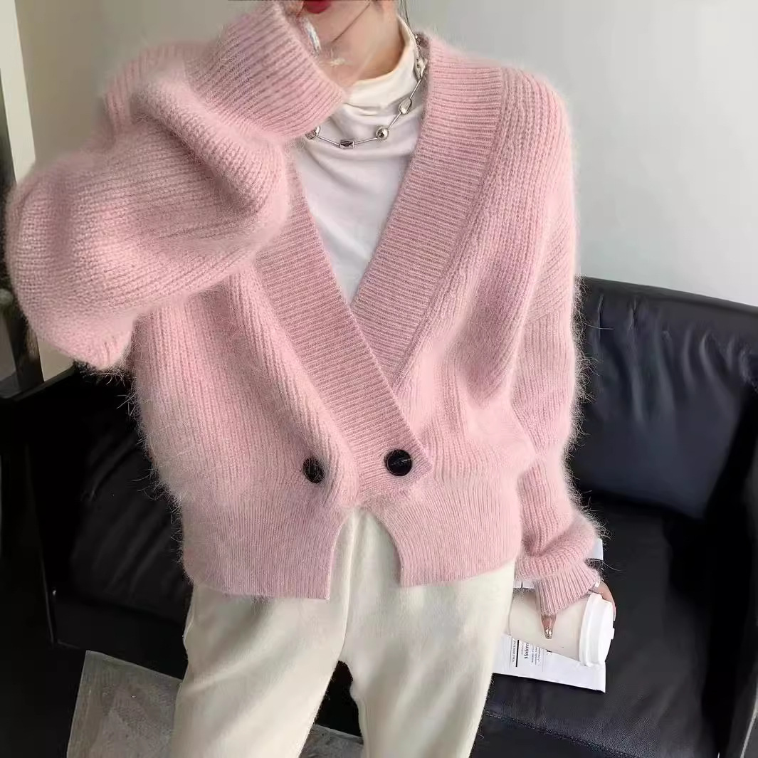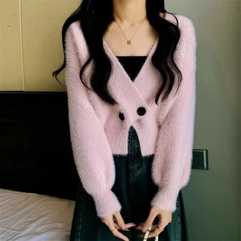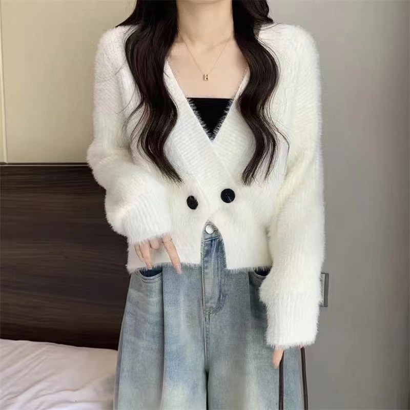| nameOriginal | Lazy Style Imitation Mink Fleece Short Sweater Coat Women's Winter Soft Waxy Loose V-neck Sweater Top |