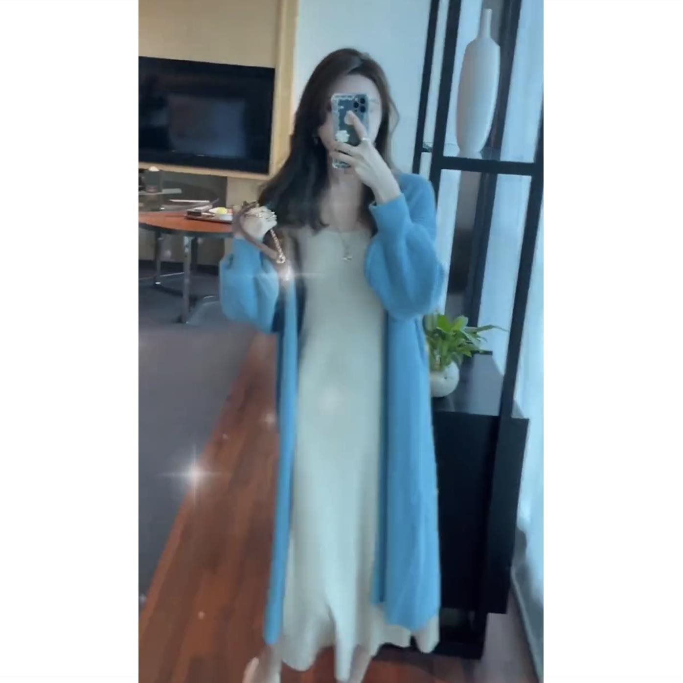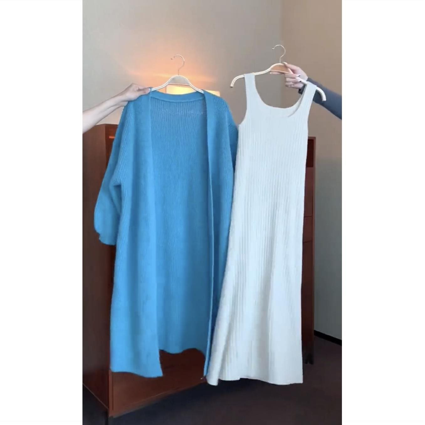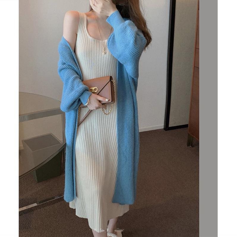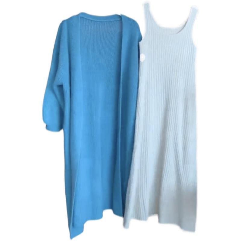 | nameOriginal | Lazy Style Knitted dress suit Women's Spring New Loose Mid-length Sweater Cardigan Sling Base Skirt |