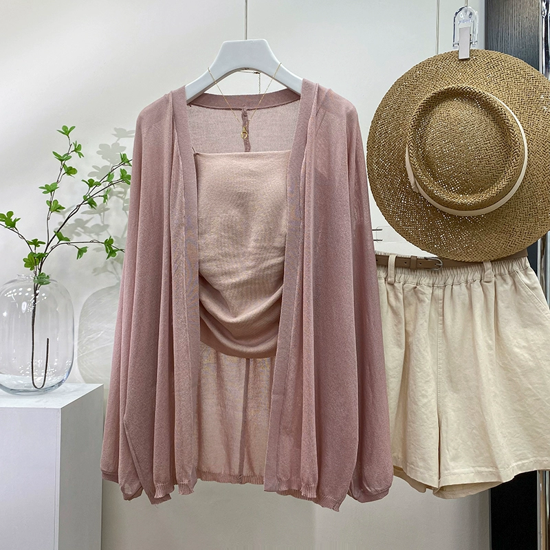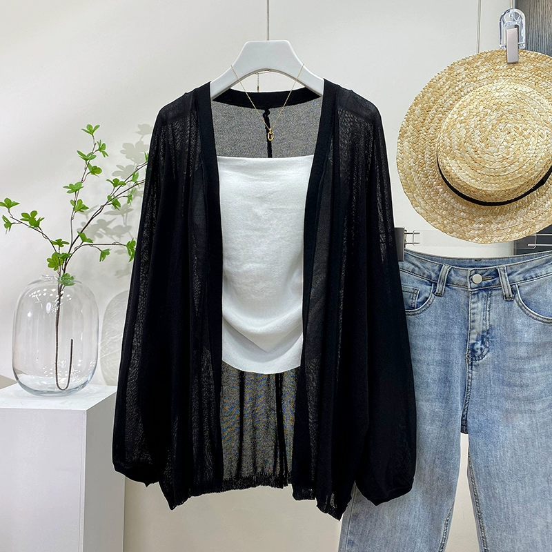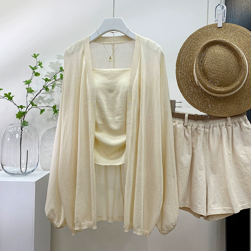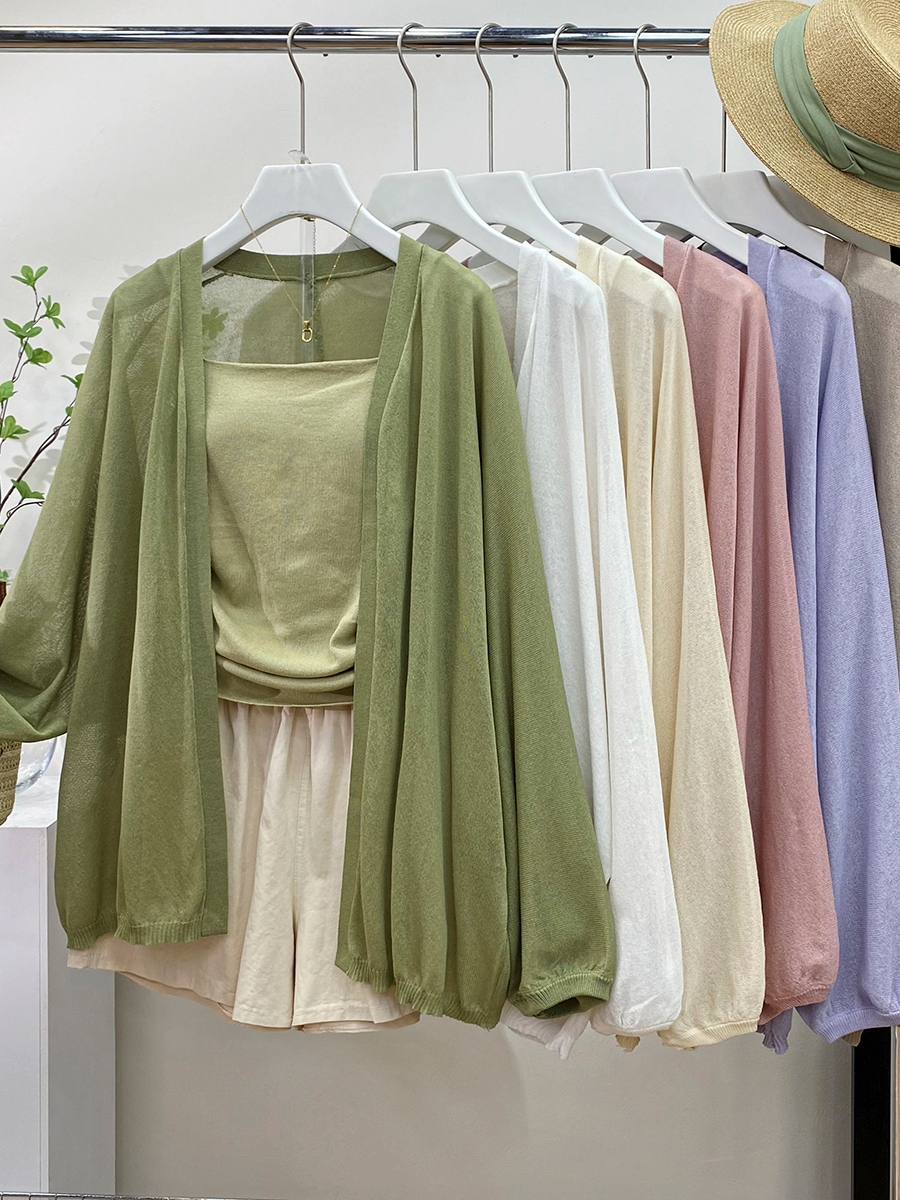 | nameOriginal | Lazy style lantern sleeve mid-length sun protection ice silk knitted cardigan for women's summer light outer wear with loose air-conditioned shawl |