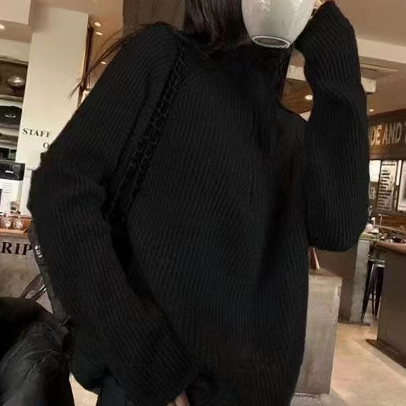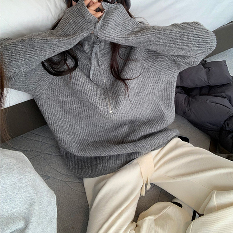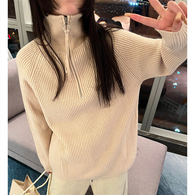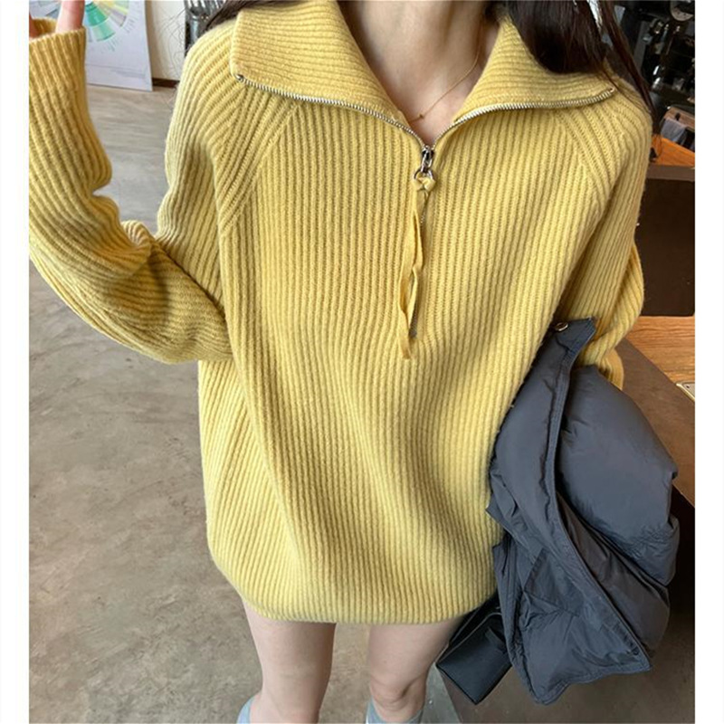 Lazy style lapel sweater for women 2023 autumn and winter New turtleneck zipper pullover loose sweater all-matching coat