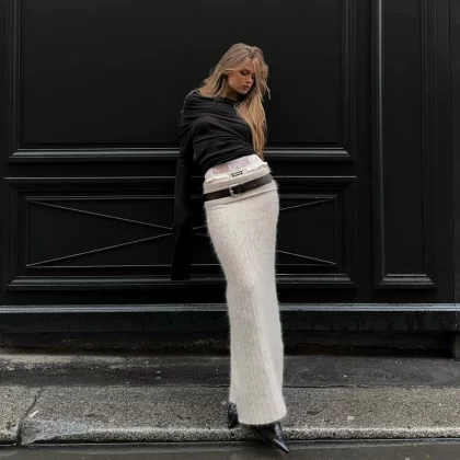| nameOriginal | Lazy style one shoulder fishtail skirt hot girl sweater |