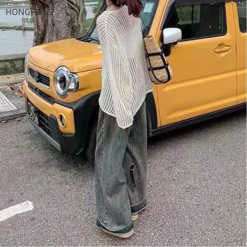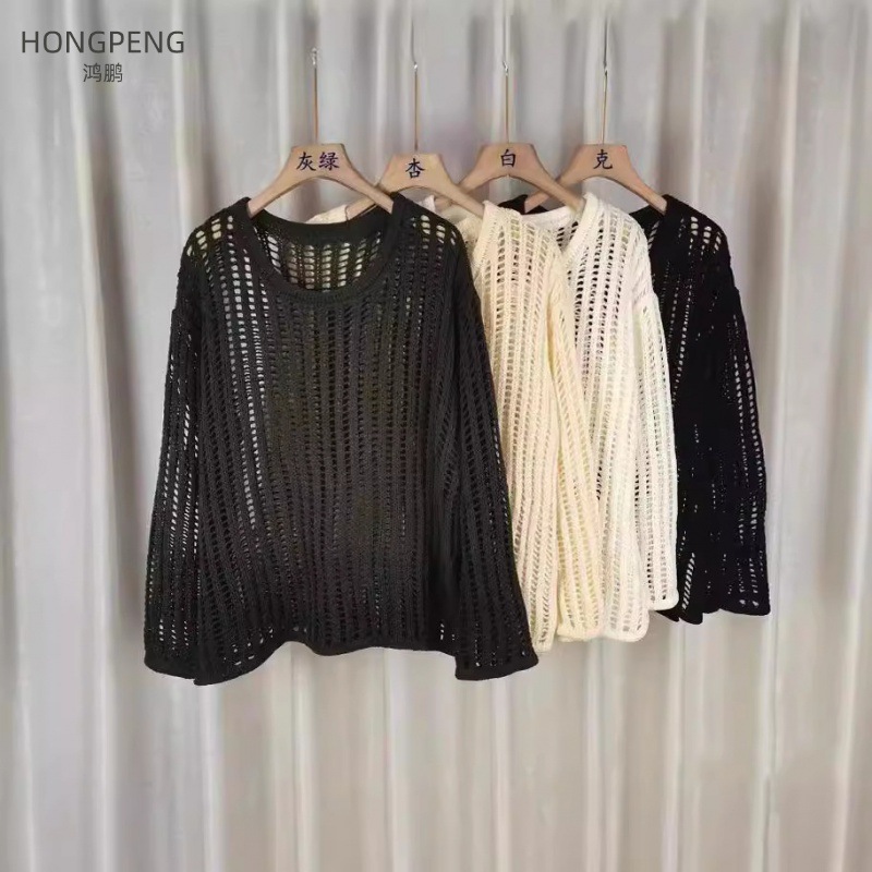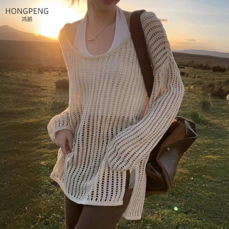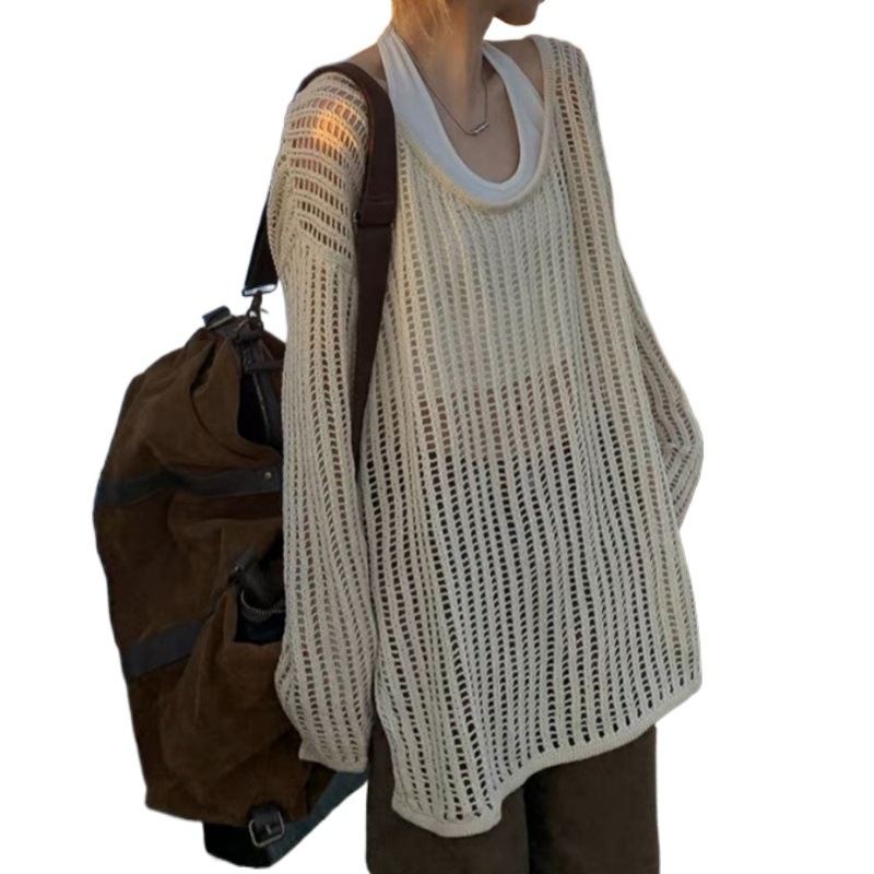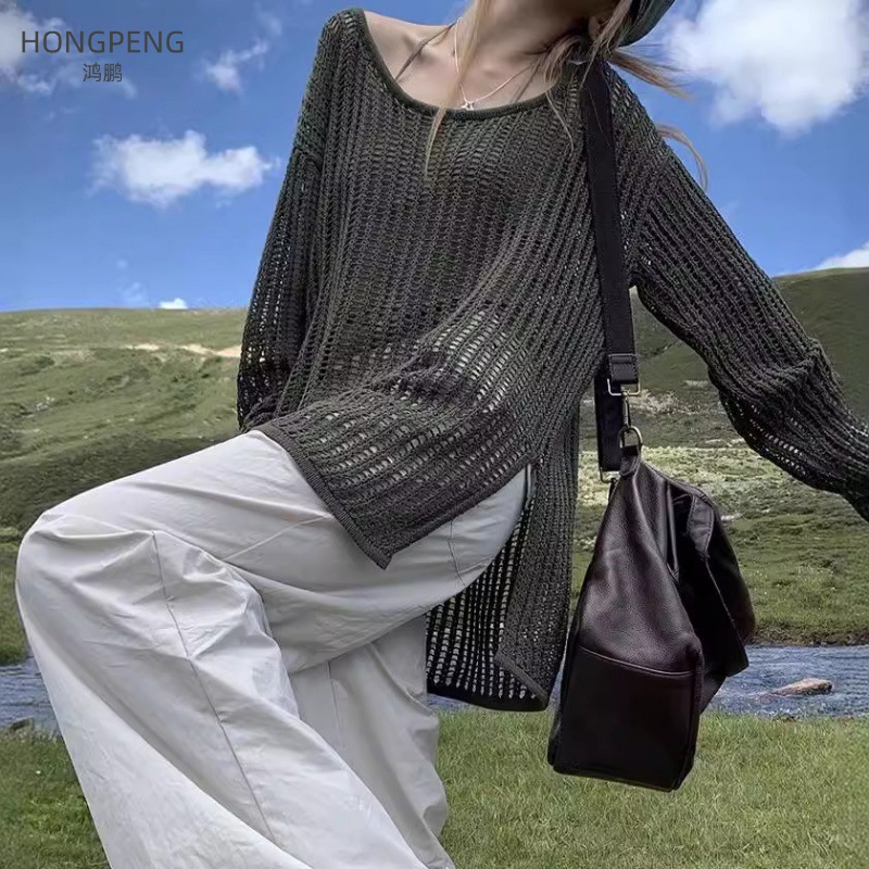 | nameOriginal | Lazy Style Overshirt Women's Summer 2024 Thin Long All-match Air-conditioning Shirt Top Long-sleeved Hollow Sweater |