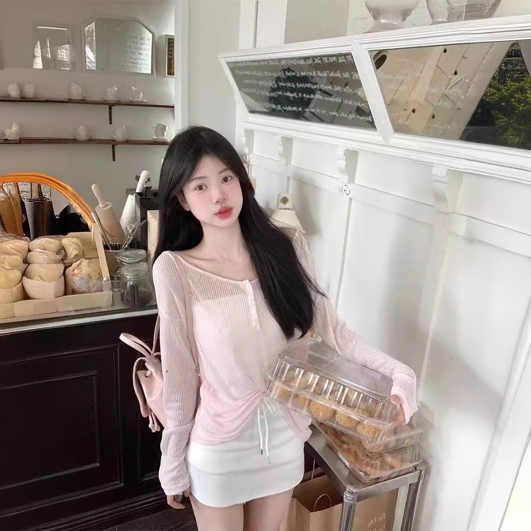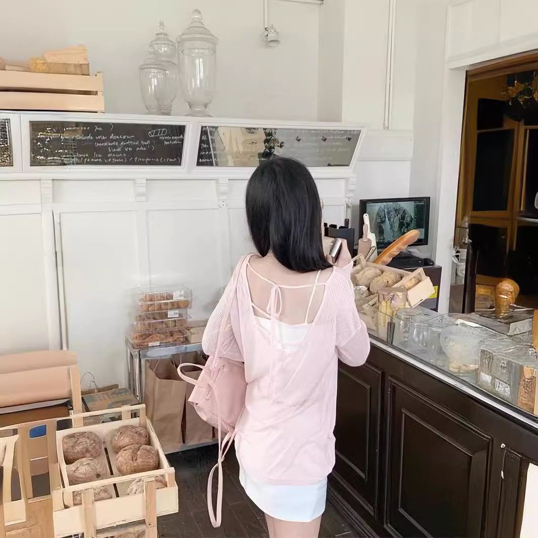 | nameOriginal | Lazy Style Pure Desire Backless Lace-up Pink Sunscreen Blouse Women's Summer 2024 New Loose Slim-fit Outer Top |