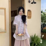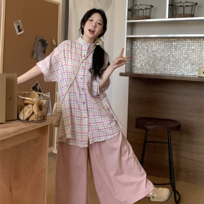 | nameOriginal | Lazy style salt style women's summer two-piece plaid shirt |