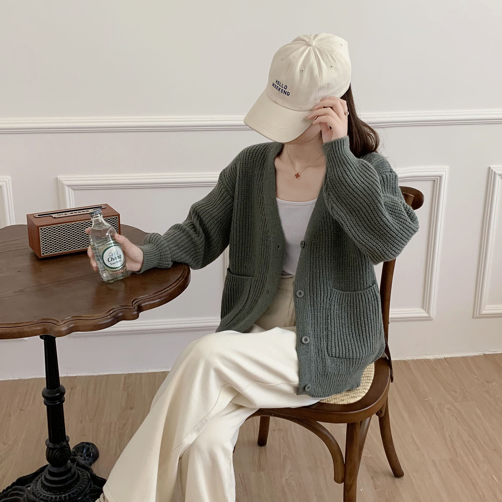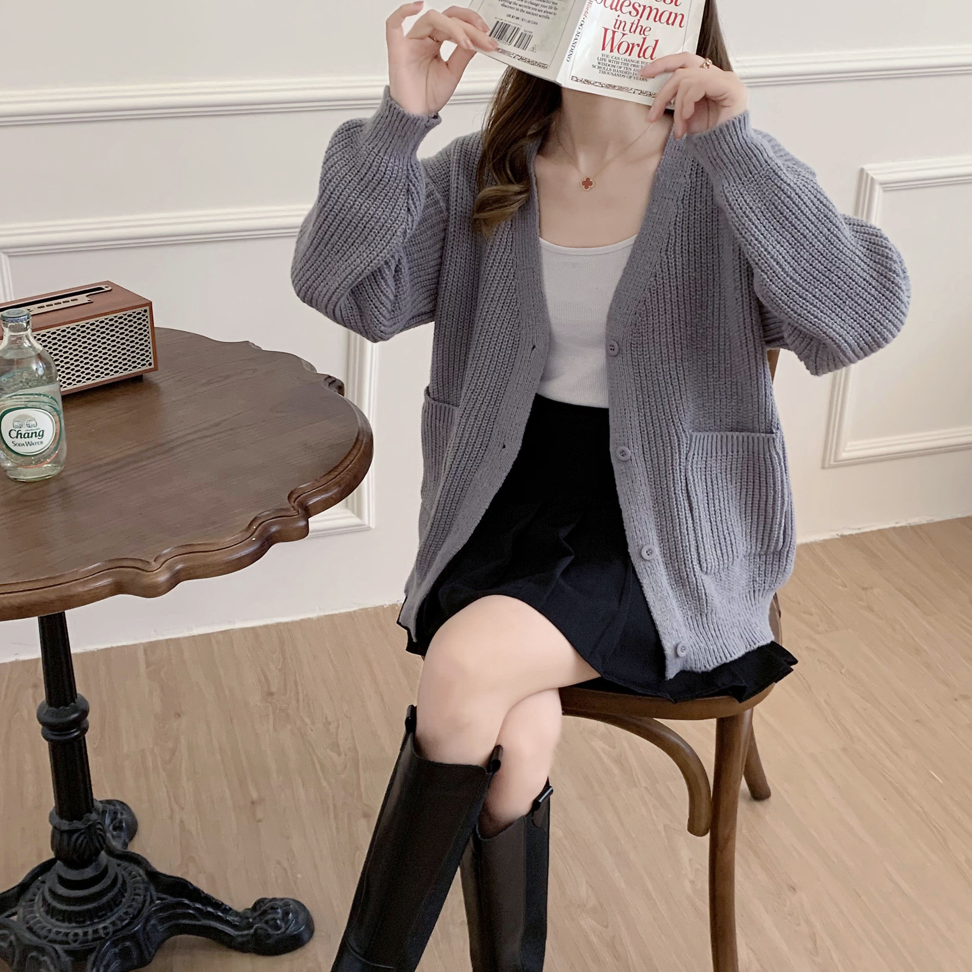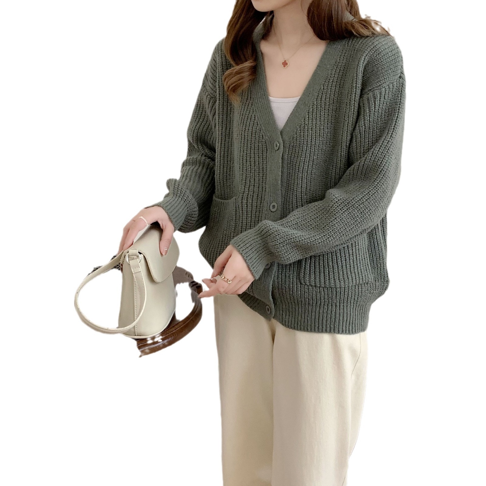 | nameOriginal | Lazy Style Single-breasted V-neck Cardigan Sweater Jacket Autumn and Winter Women's New Loose Elegant Solid Color Knitted Top |