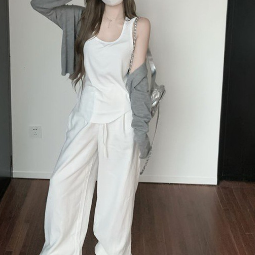 | nameOriginal | Lazy Style suit Women's Summer Korean White Camisole Sunscreen Cardigan Casual Wide-leg Pants Casual Three-piece Set |
