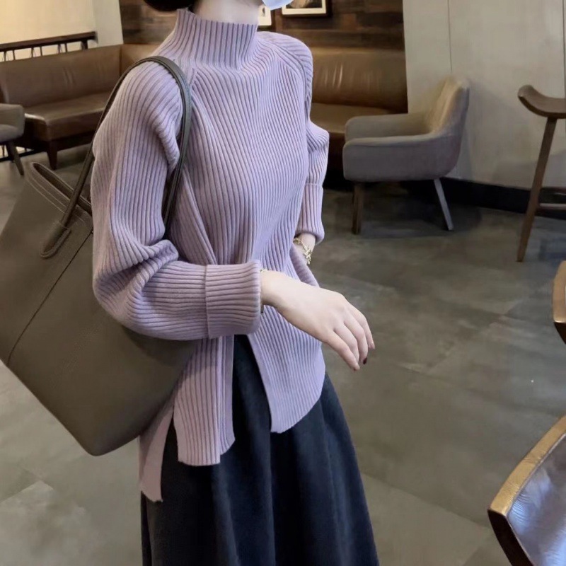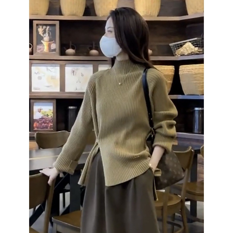 | nameOriginal | Lazy style super nice design tight waist high collar vertical bar bottoming sweater women's autumn and winter inner sweater top |