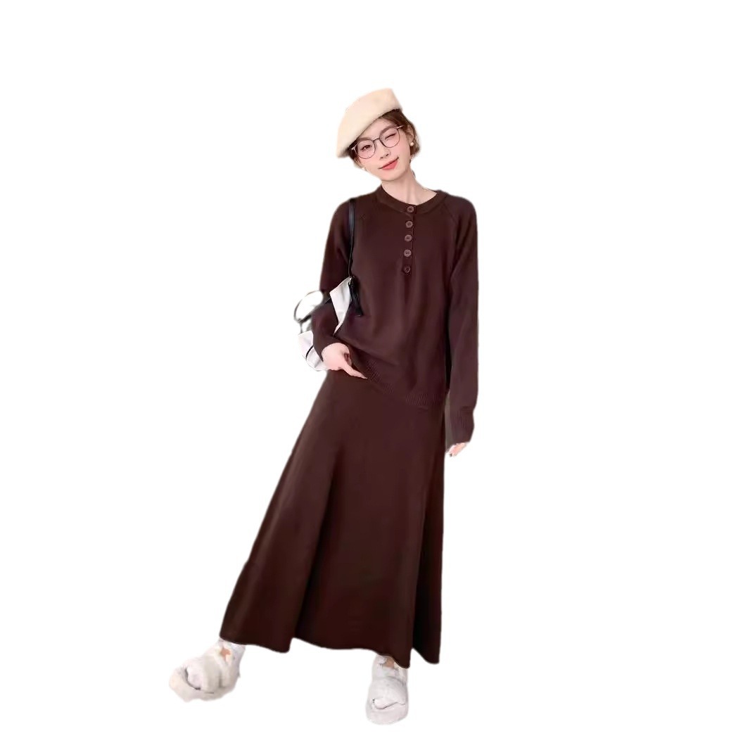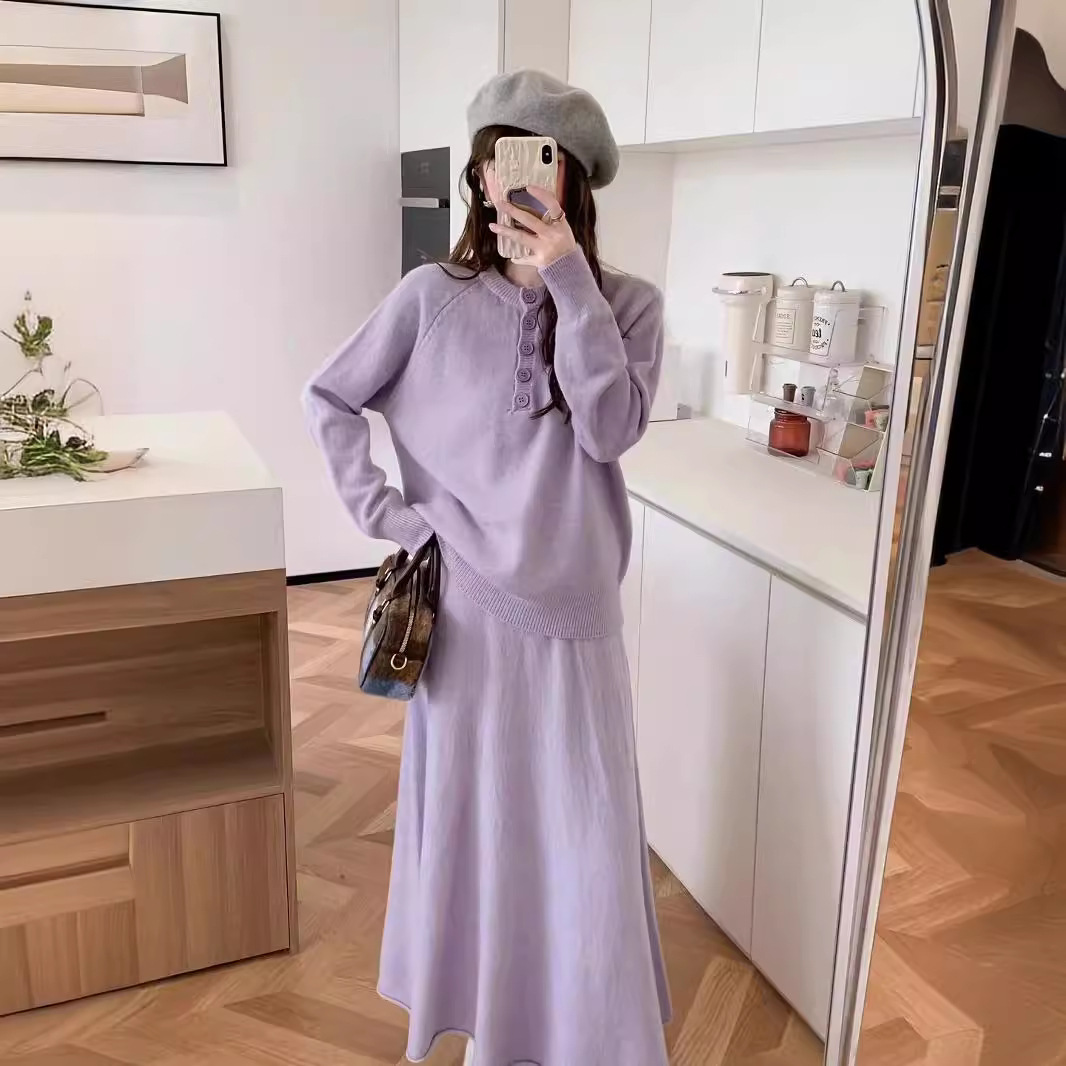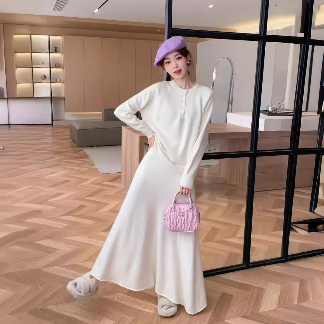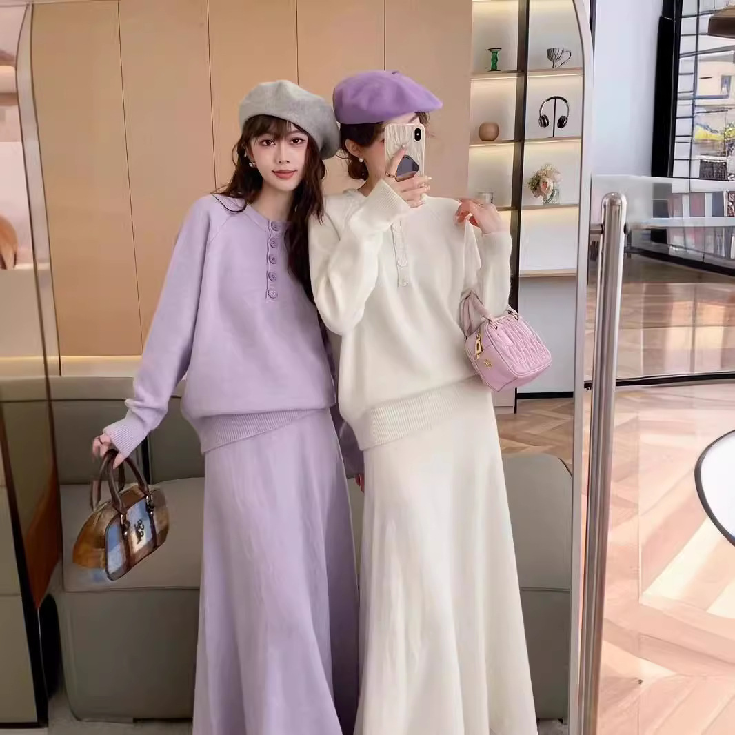 | nameOriginal | Lazy Style Sweater suit Solid Color Long-sleeved Sweater Women's Autumn and Winter New High Waist Button Fishtail Skirt Two-piece Fashionable Set |