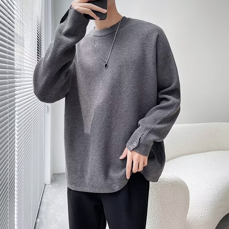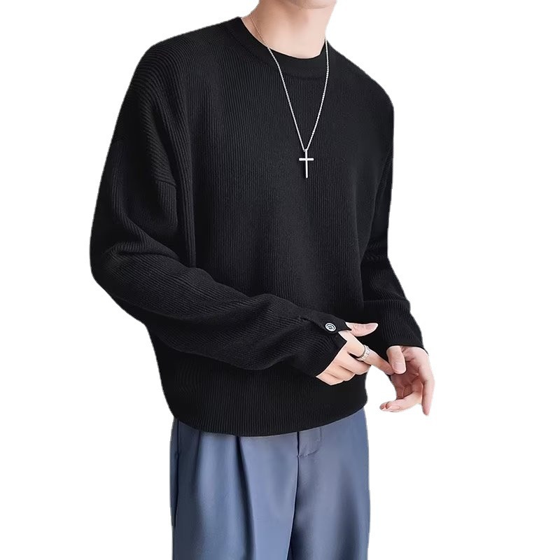 | nameOriginal | Lazy sweater men's white high-grade inner round neck sweater fashion brand hand sleeve split button knitted bottoming shirt |