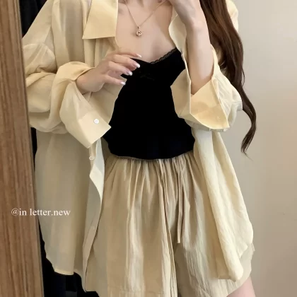 | nameOriginal | Lazy walking shorts Korean style high waisted chic drawstring |