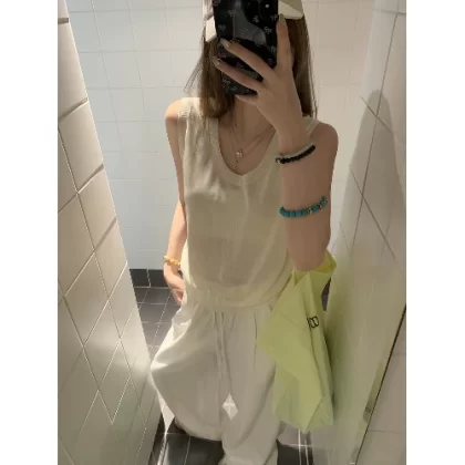 | nameOriginal | Lazy white camisole and casual pants fashion set |