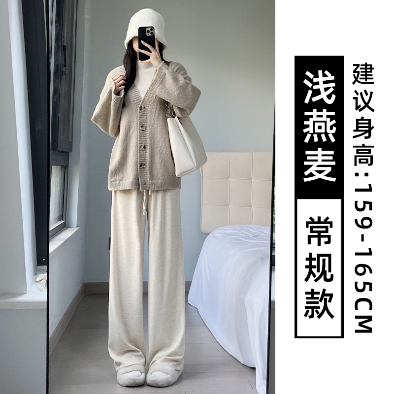 | nameOriginal | Lazy white knitted high-waisted casual wide-leg pants |