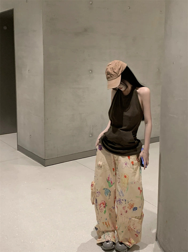 | nameOriginal | Lazy women's summer loose high-waisted floor-length trousers cartoon |