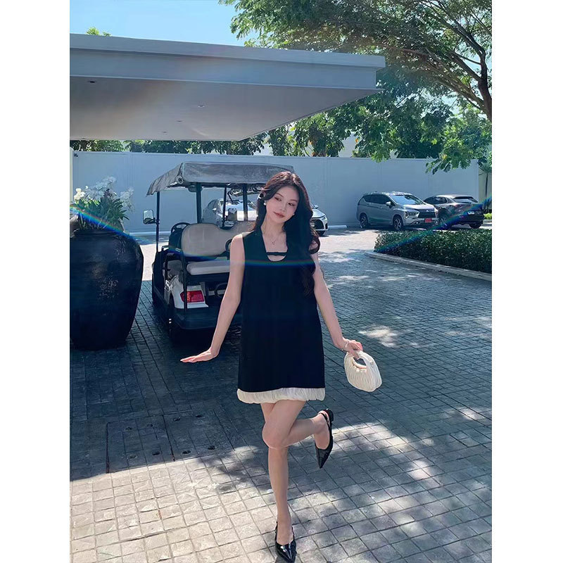 nameOriginal | Lazy zoe's first little black skirt this year M1U is a black vest temperament dress A short skirt |