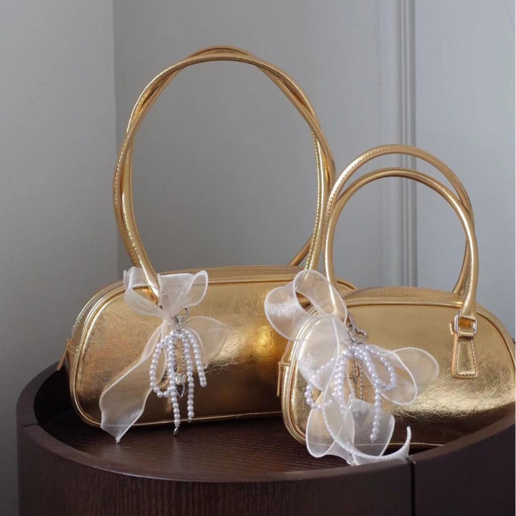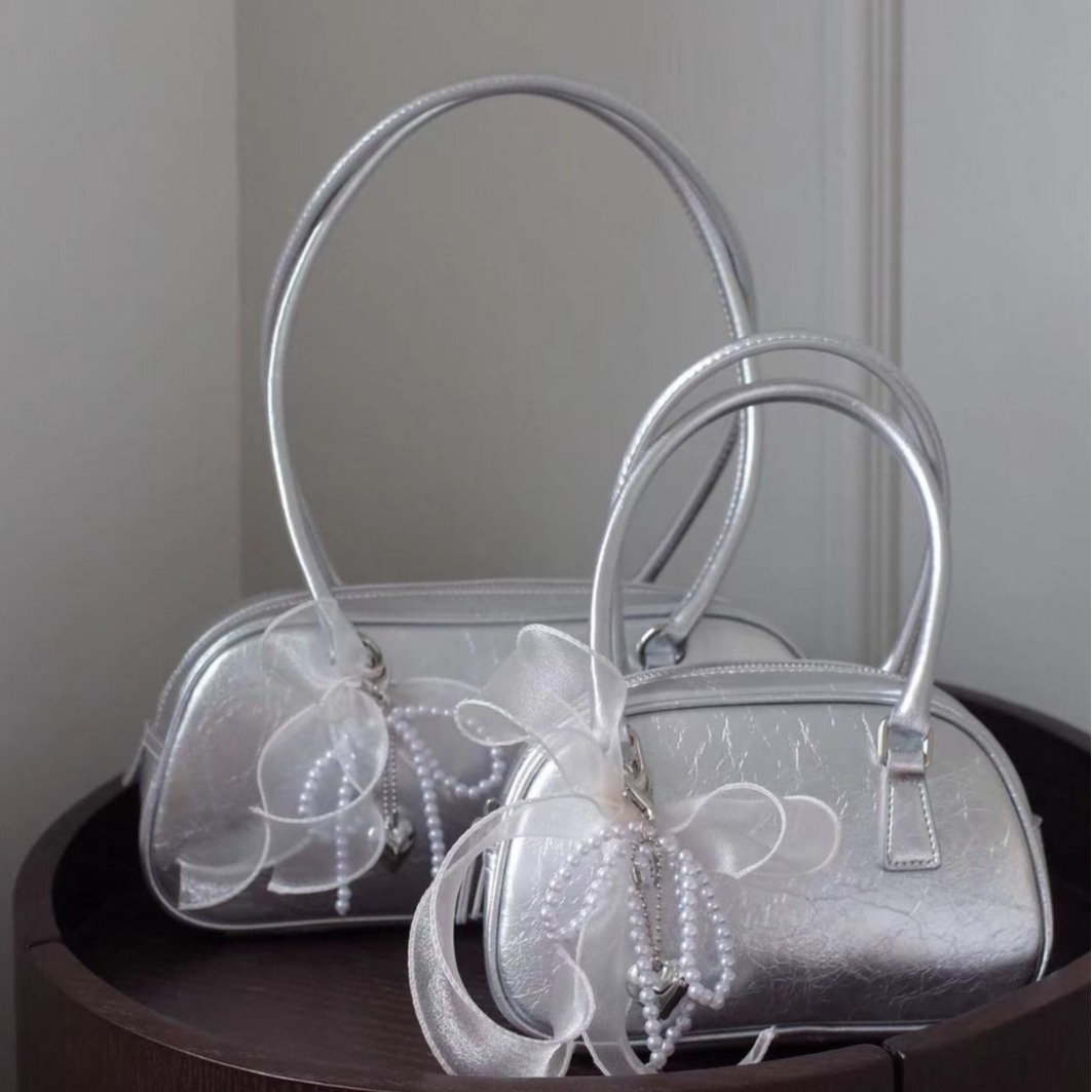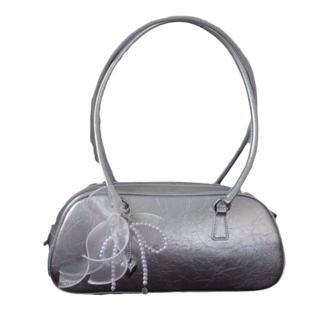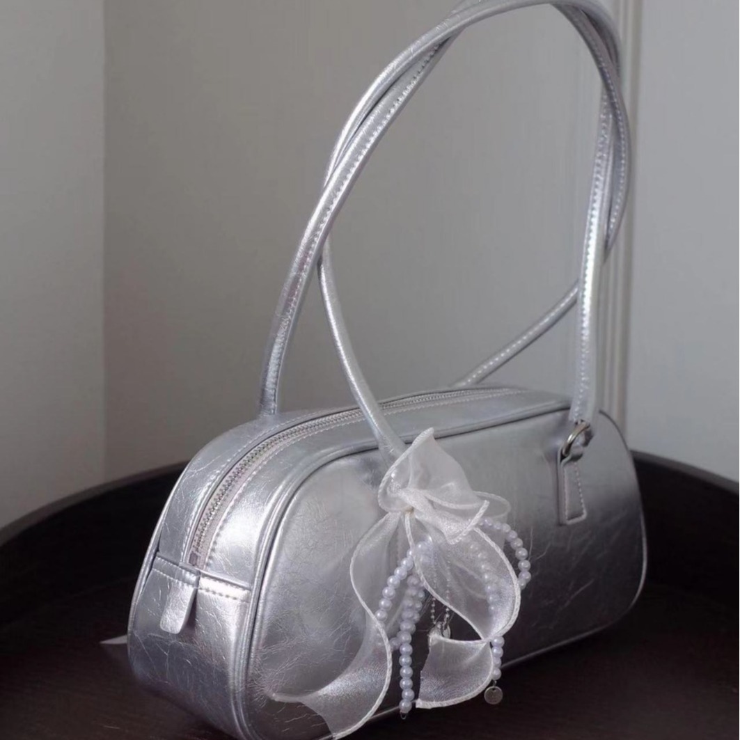| nameOriginal | Le Orange New South Korea Niche Dear Cowhide silver Metallic Bowling Bag Handbag Cute Underarm Bag |