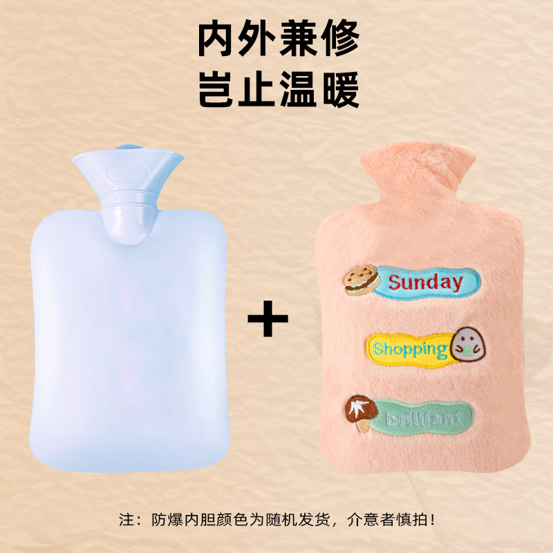 | nameOriginal | Le Xueer hot water bag water injection household explosion-proof embroidery plush cloth cover large capacity water PVC hand warmer wholesale |