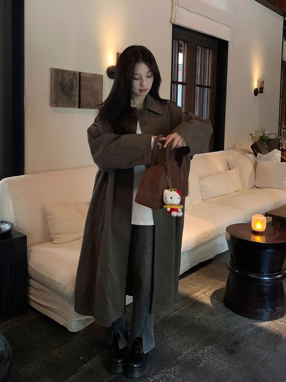 | nameOriginal | LEADINGLADY Korean Style Loose dark gray Green free size Coat for Petite Women's Elegant Simple Coat |
