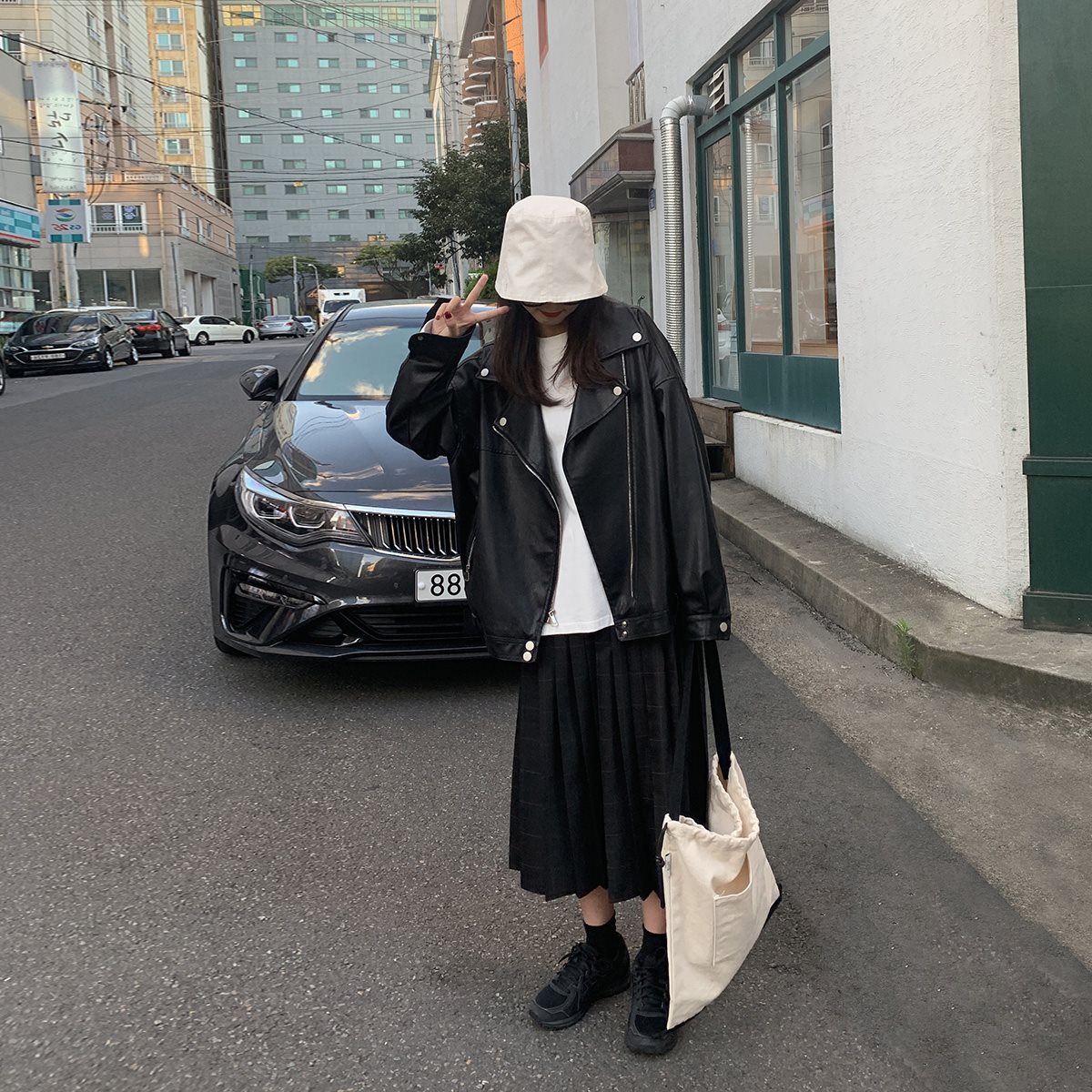 | nameOriginal | Leather Jacket Women's 2024 New Spring and Autumn Short Korean Loose Retro Casual Hong Kong Style Motorcycle PU Leather Jacket |