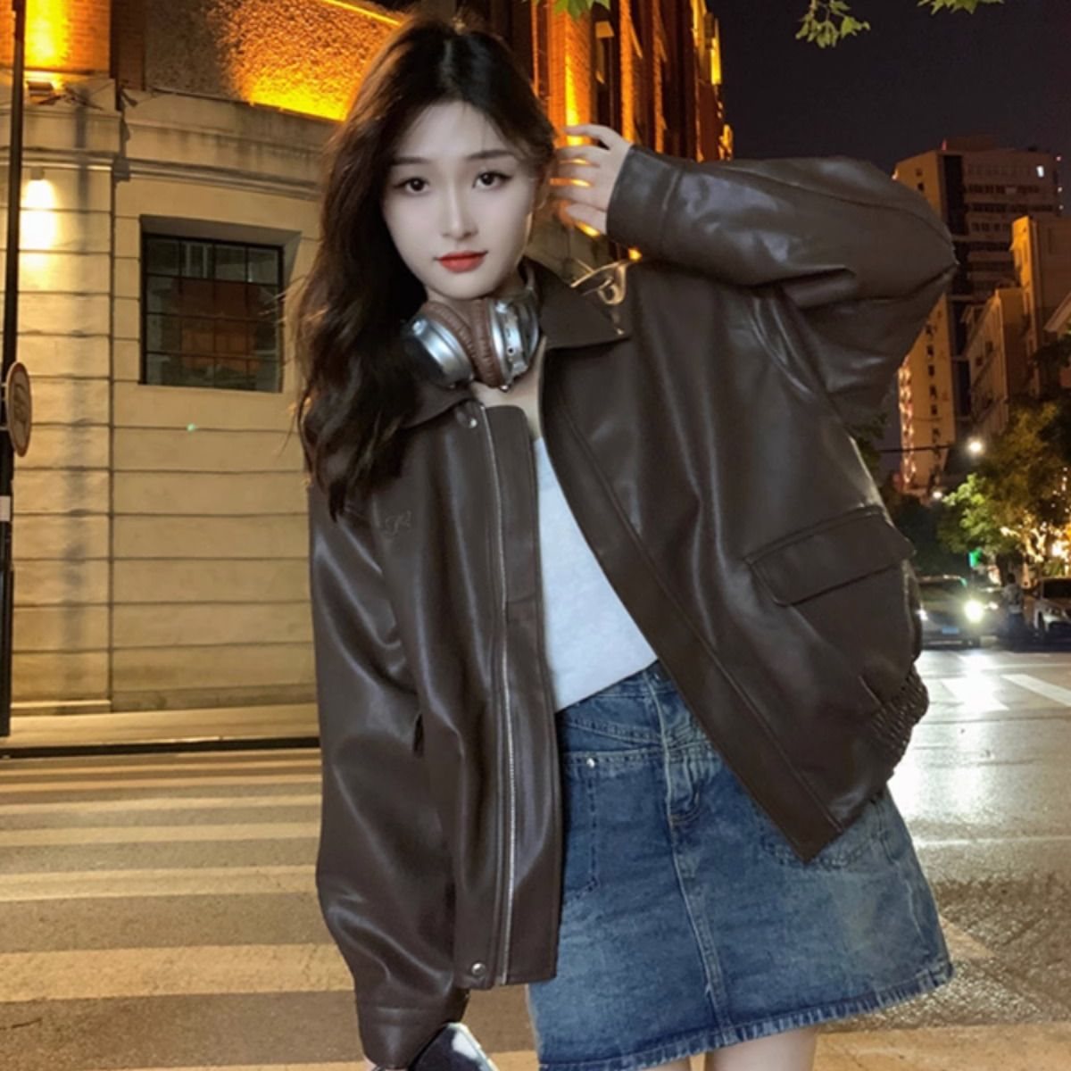 | nameOriginal | Leather Jacket Women's Autumn and Winter New Retro Black Sense Small Casual Loose plus size Leather Jacket Spandex Long Sleeve |