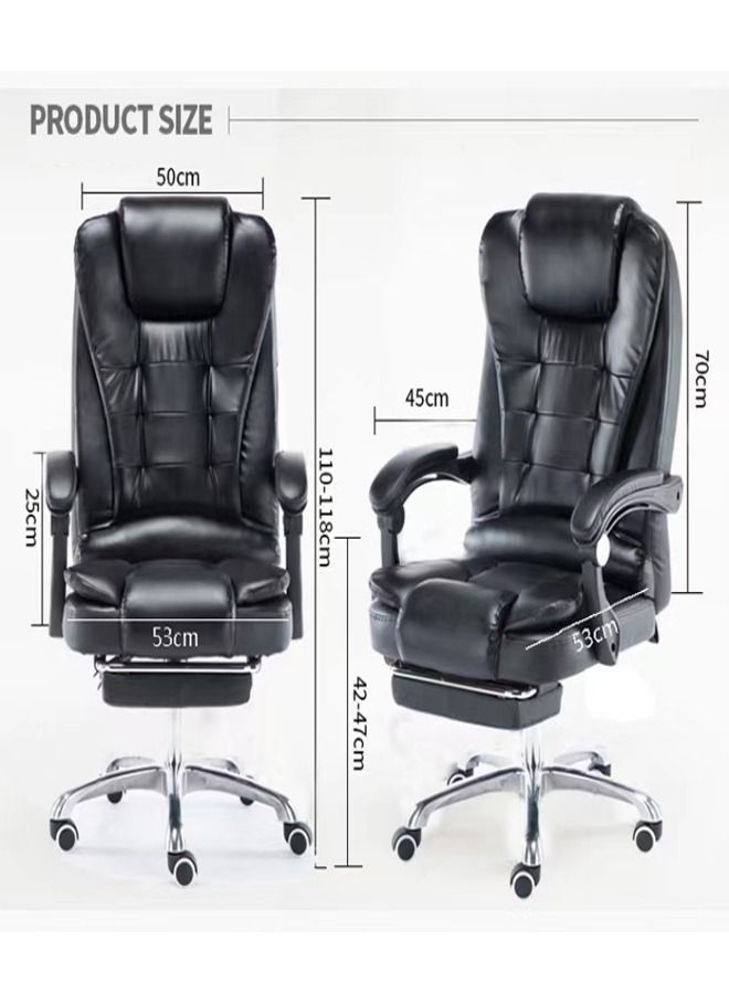 The Multifunction Leather Executive Office and Gaming Chair With Footrest is the perfect addition to any workspace or gaming setup. Made with high-quality leather, this chair is both comfortable and durable, ensuring long-lasting use. The chair features a footrest that can be adjusted to your desired height, providing ultimate relaxation during long work or gaming sessions. The chair also has multiple functions, including adjustable armrests, a reclining backrest, and a tilt function, allowing you to customize your seating experience. The sleek and modern design of the chair makes it a stylish addition to any office or gaming room. Upgrade your workspace or gaming setup with the Multifunction Leather Executive Office and Gaming Chair With Footrest.