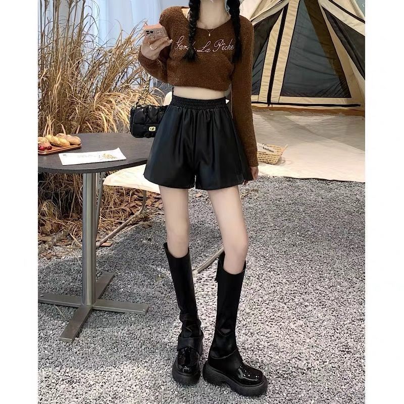| nameOriginal | Leather Shorts Women's Autumn and Winter 2024 New Korean Style Outer Wear Elasticated High Waist Slimming Leather Pants Casual Base Boots Pants |