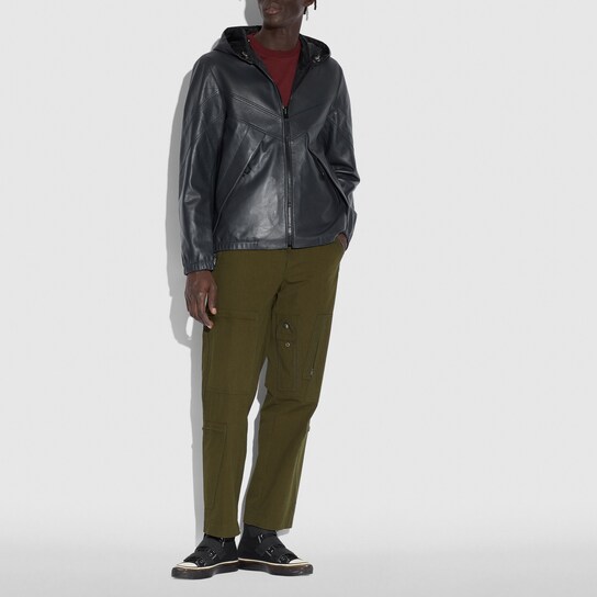 This product features a combination of high-quality materials, including 100% lamb leather and 100% nylon. It comes with a convenient zip closure and zip pockets for added functionality. The item is also reversible, providing versatility in your wardrobe. With a length of 26 1/2″, it is suitable for a range of body types. To maintain its quality, it is recommended to clean the product with a leather specialist. The model in the product photos is 6’2″ (188cm) and is wearing a size M. The style number for this product is 97829.