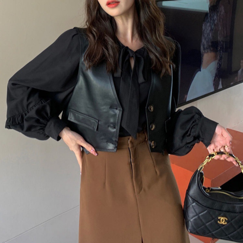 | nameOriginal | Leather Vest Women's 2024 Spring New PU Leather Slim Look Vest Sleeveless Vest Loose Leather Jacket Waistcoat |