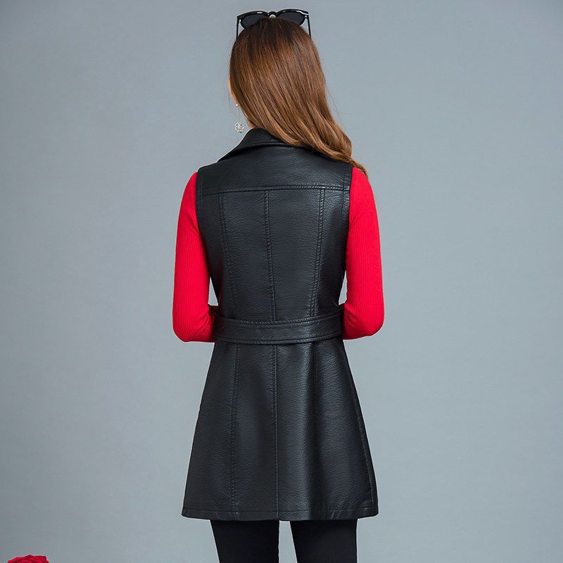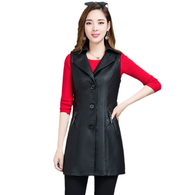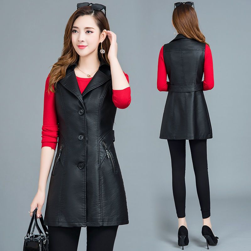 Leather Vest Women's Mid-length 2023 Spring and Autumn New Korean style suit slim-fit slimming Leather Jacket Women's vest