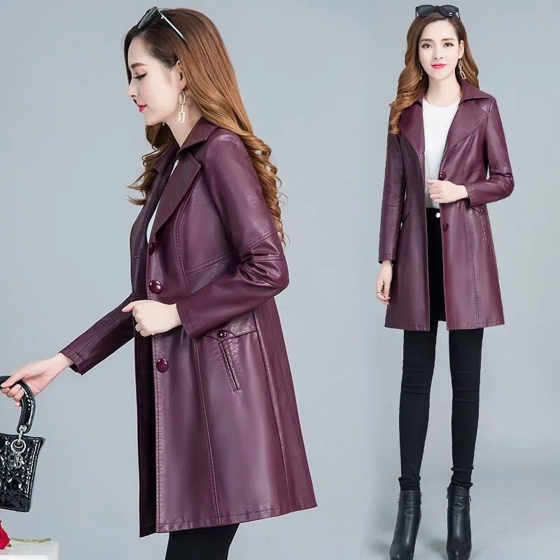 Leather Women's 2019 New Korean Style Slim-fit Slimming Mid-length Women's Spring Women's PU Women's plus size Leather Coat Women's Trendy