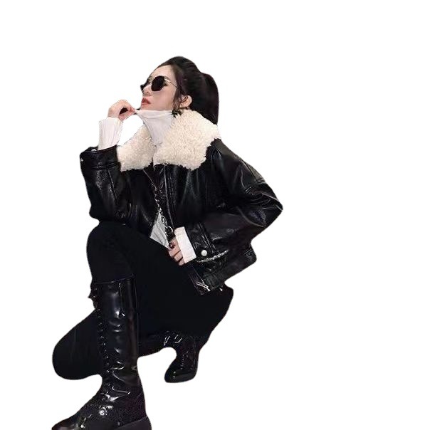 | nameOriginal | Leather Women's Autumn and Winter 2023 New Women's Clothing Korean Style Motorcycle Leather Jacket Top Short High Waist Coat Thick Women |