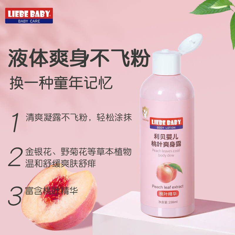 Lebey Baby Peach Leaf Body Dew Newborn Baby Remove Prickly Heat and Prevent Prickly Heat Peach Water Children's Liquid Body Powder