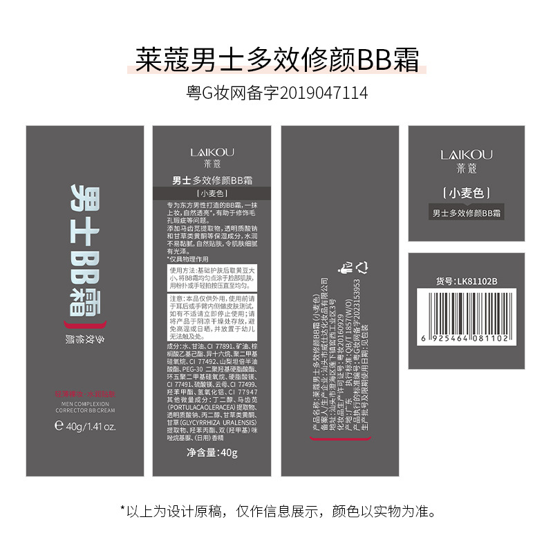 | nameOriginal | Lecco men's concealer BB cream wheat natural color 40g quick hand trembles moisturizing cosmetics skin care products |