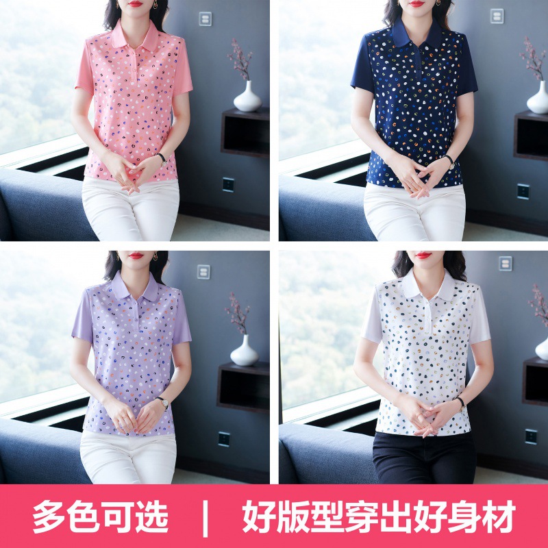 | nameOriginal | Leck Short-sleeved T-shirt Women's 2024 Summer New Fashionable Age-reducing Women's Led-up Top Loose T-shirt Polo Shirt |